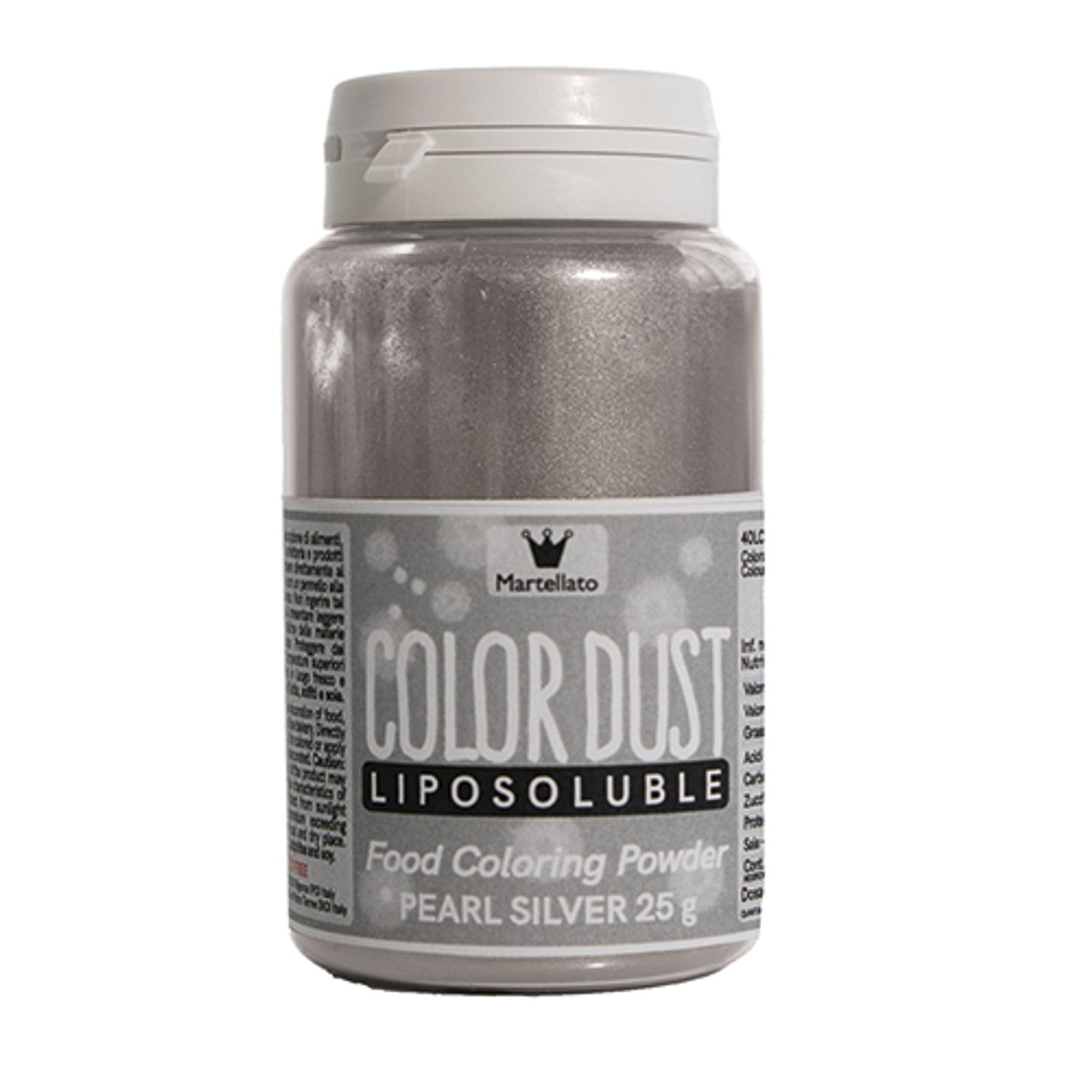 Barva v prášku rozpustná v tucích světle STŘÍBRNÁ bez azo 25g PERLEŤOVÁ Martellato