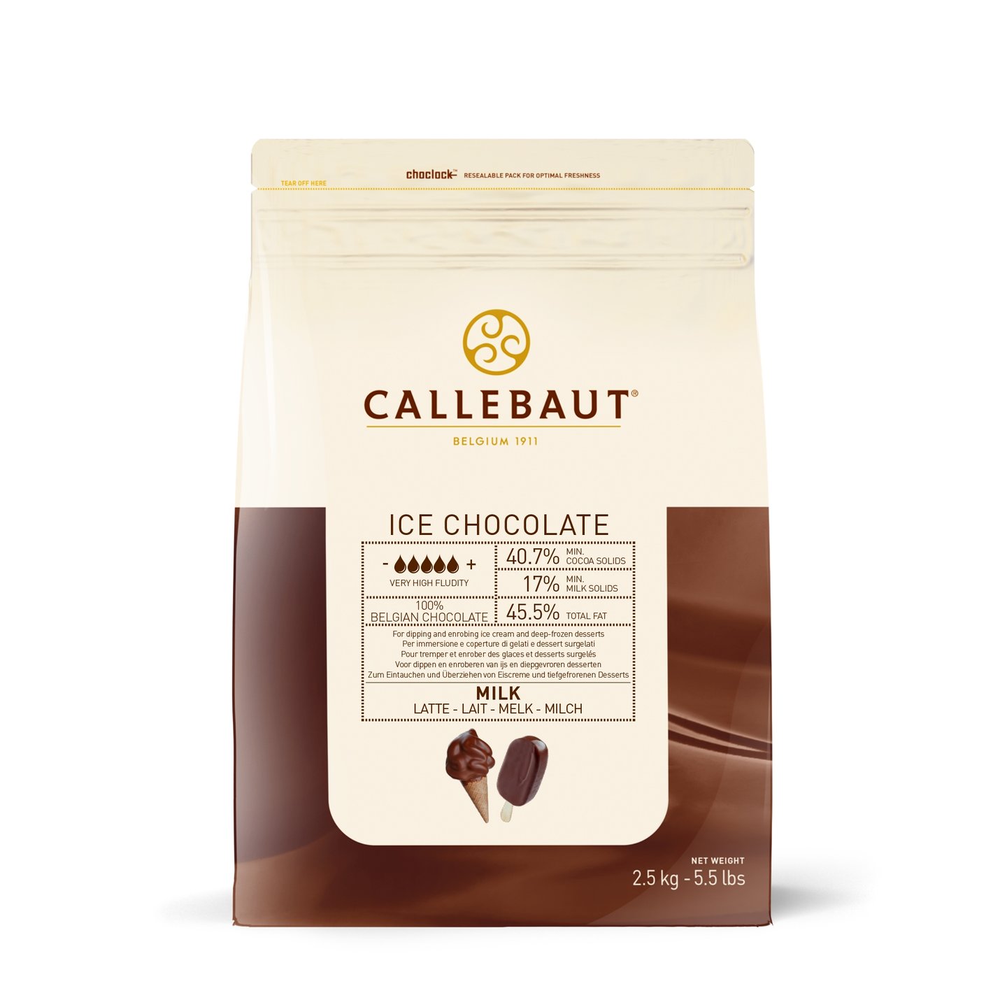 - 100% čokoládová mléčná poleva na nanuky a dezerty s výrazným lomem.