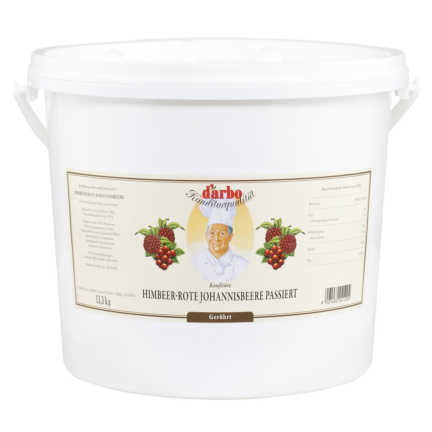 Ovocná náplň s 45% obsahem ovocného podílu ( 30% malin a 15% červeného rybízu).