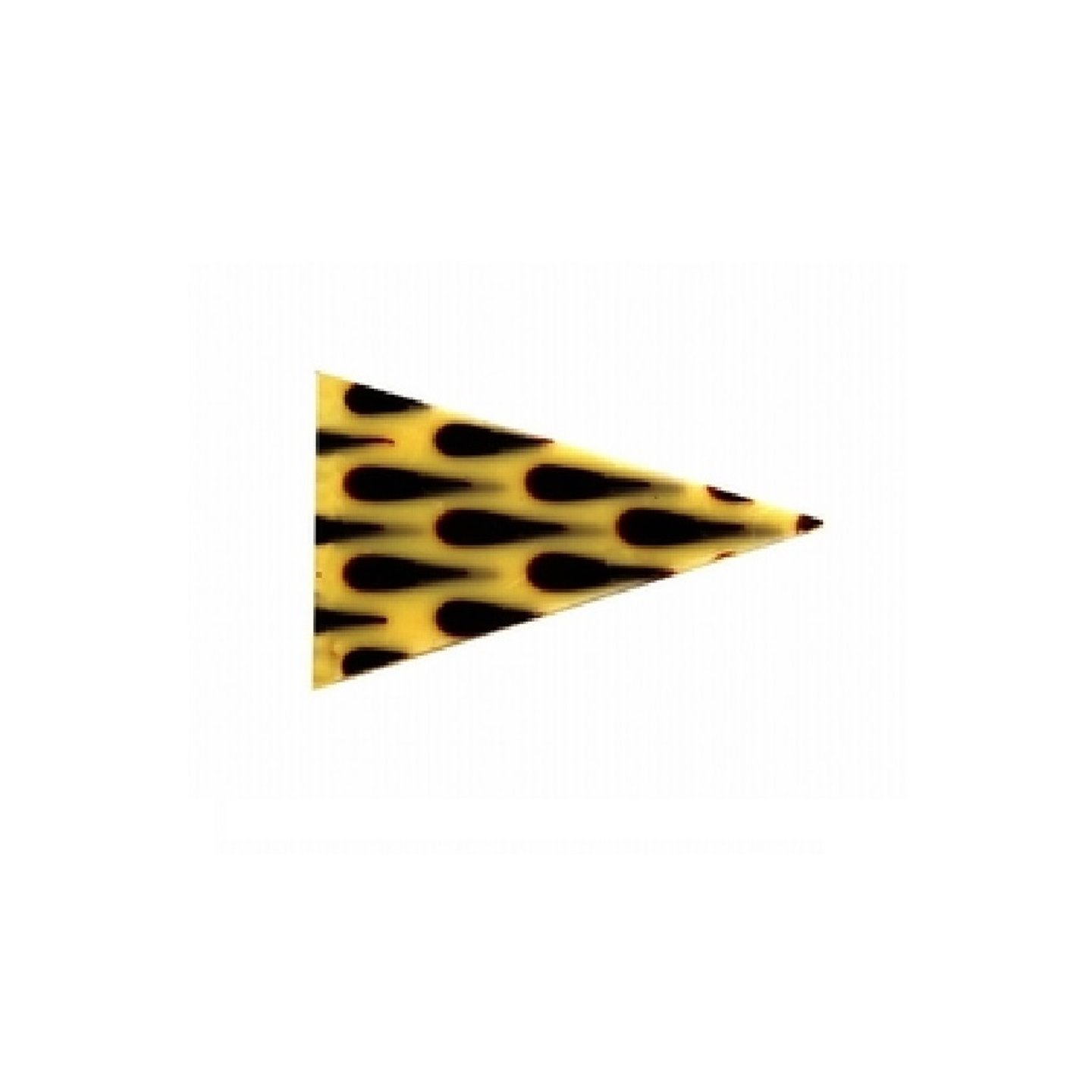 Čokoládová dekorace ve tvaru trojúhelníku s tmavými kapičkami z kvalitní belgické bílé čokolády.