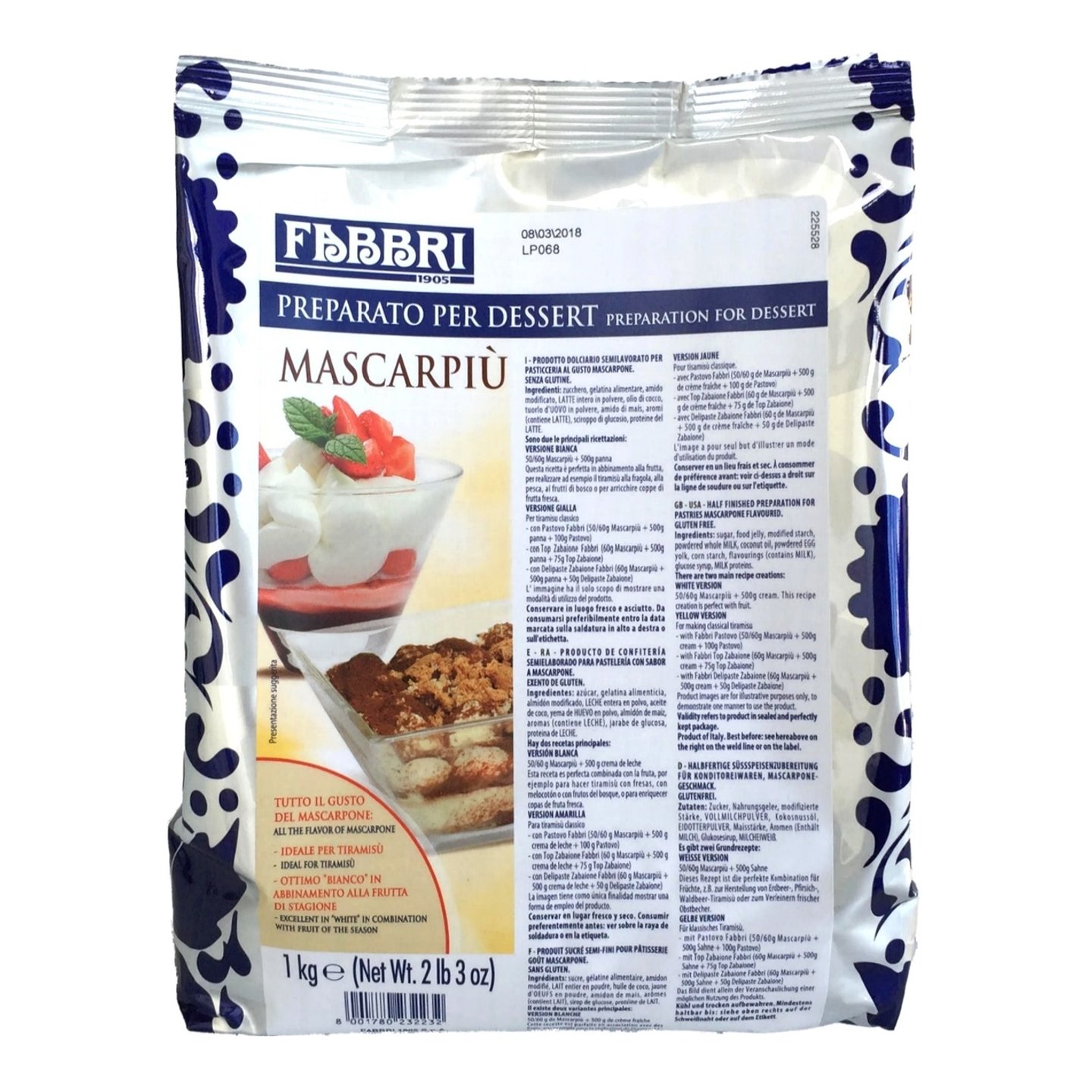 - Vysoce kvalitní směs v prášku pro přípravu krému s chutí Mascarpone.
