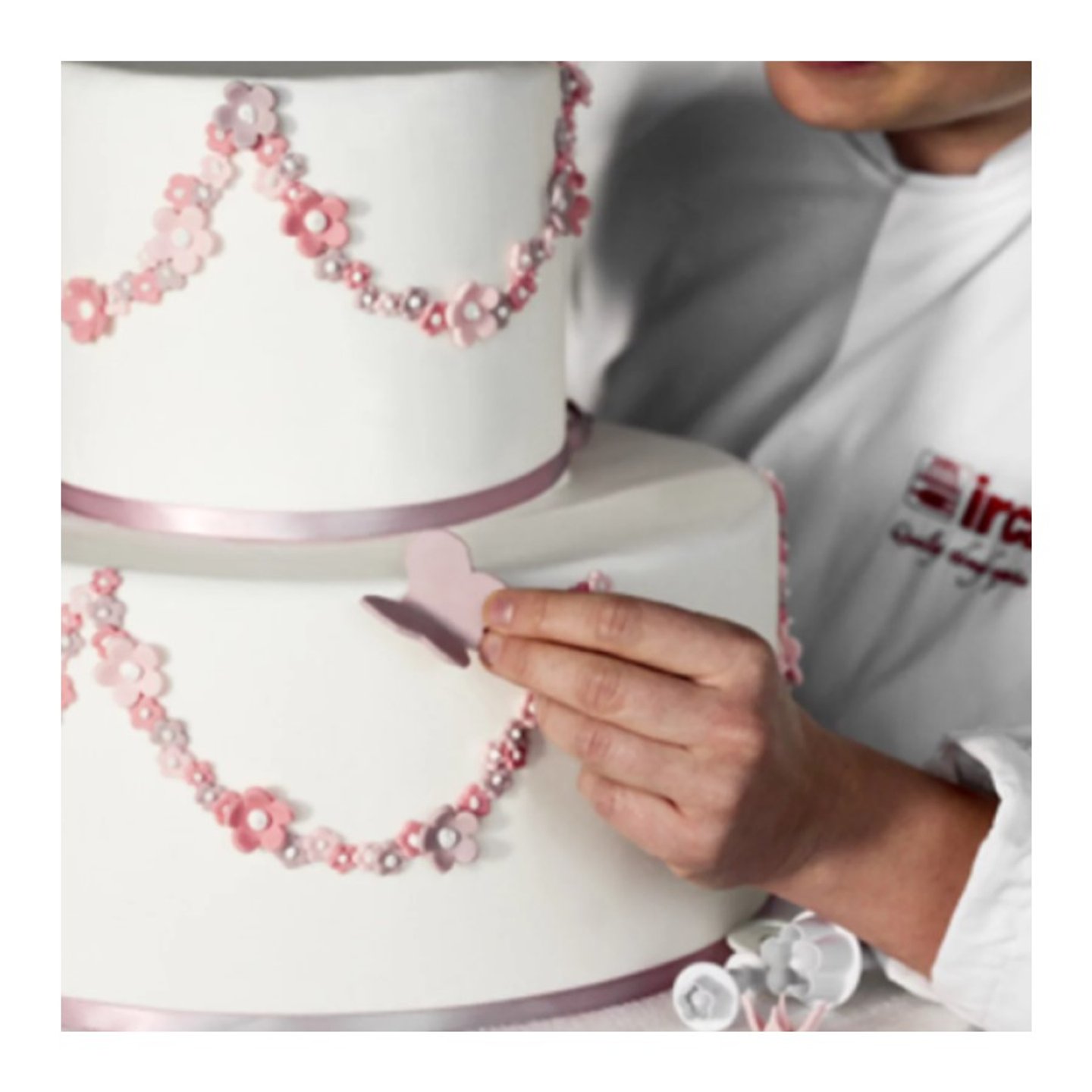 Bílá cukrová modelovací a potahovací hmota s obsahem kakaového másla.