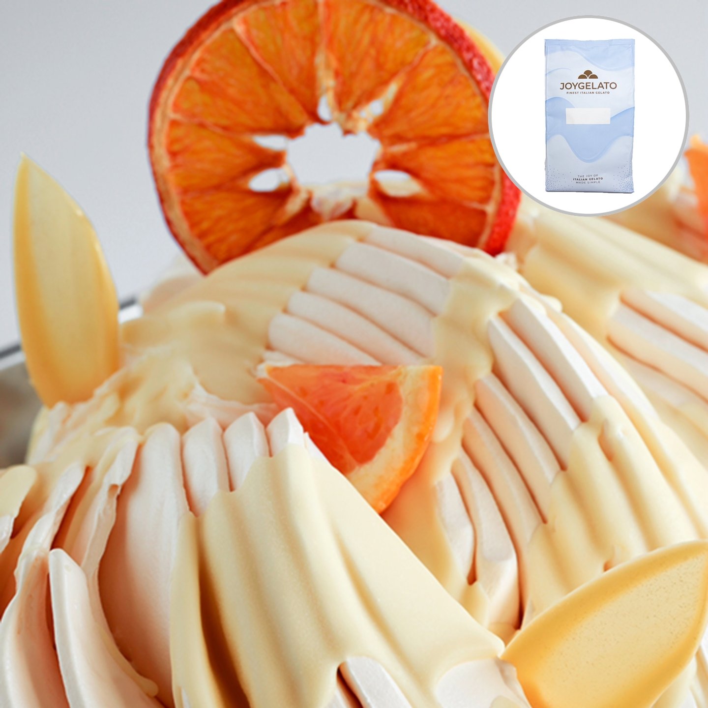 Kompletní hotová báze pro přípravu ovocné pomerančové zmrzliny.