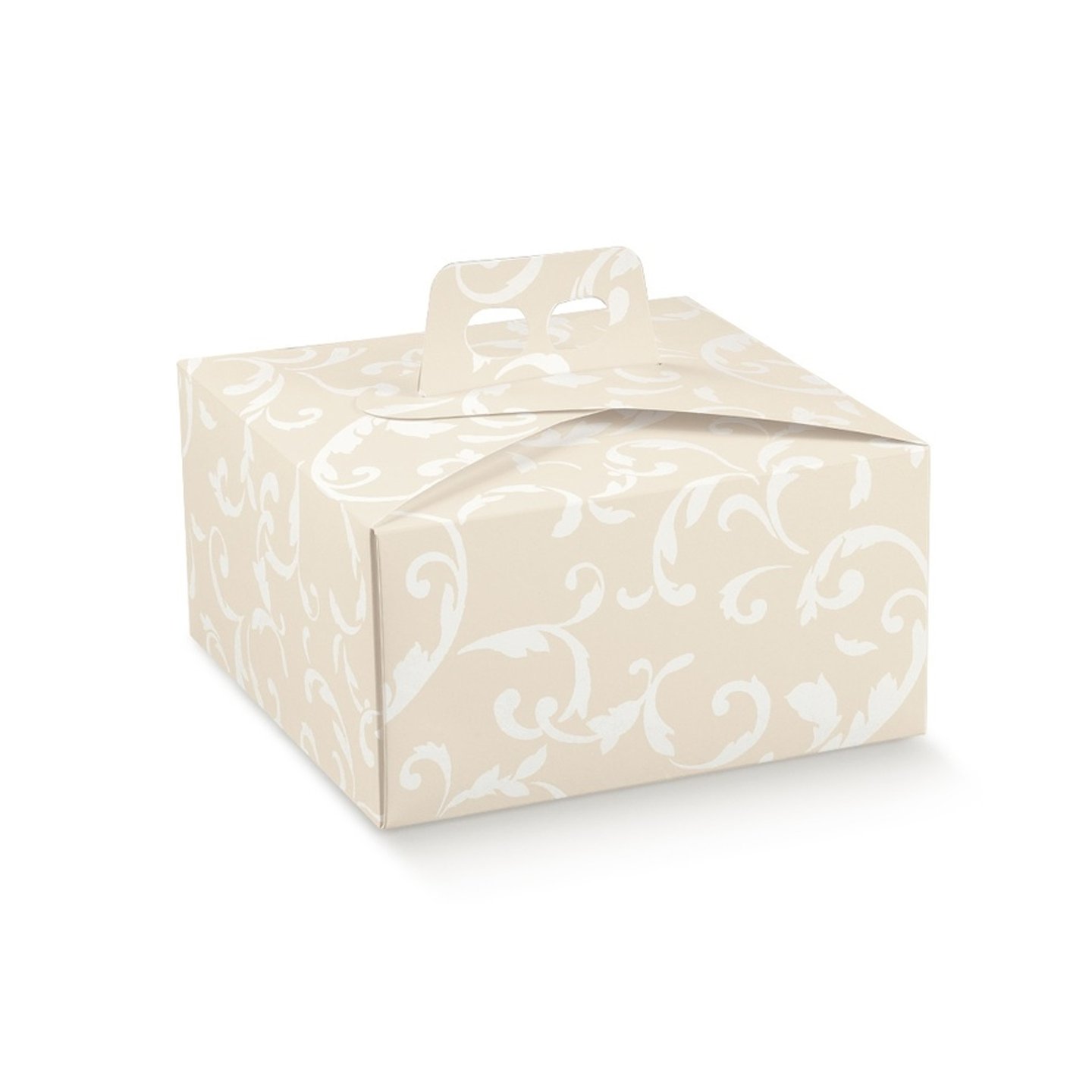 Krabice na dort hranatá s uchem potisk Damascato avorio 31x31x12cm 1ks (krt.5x20ks)