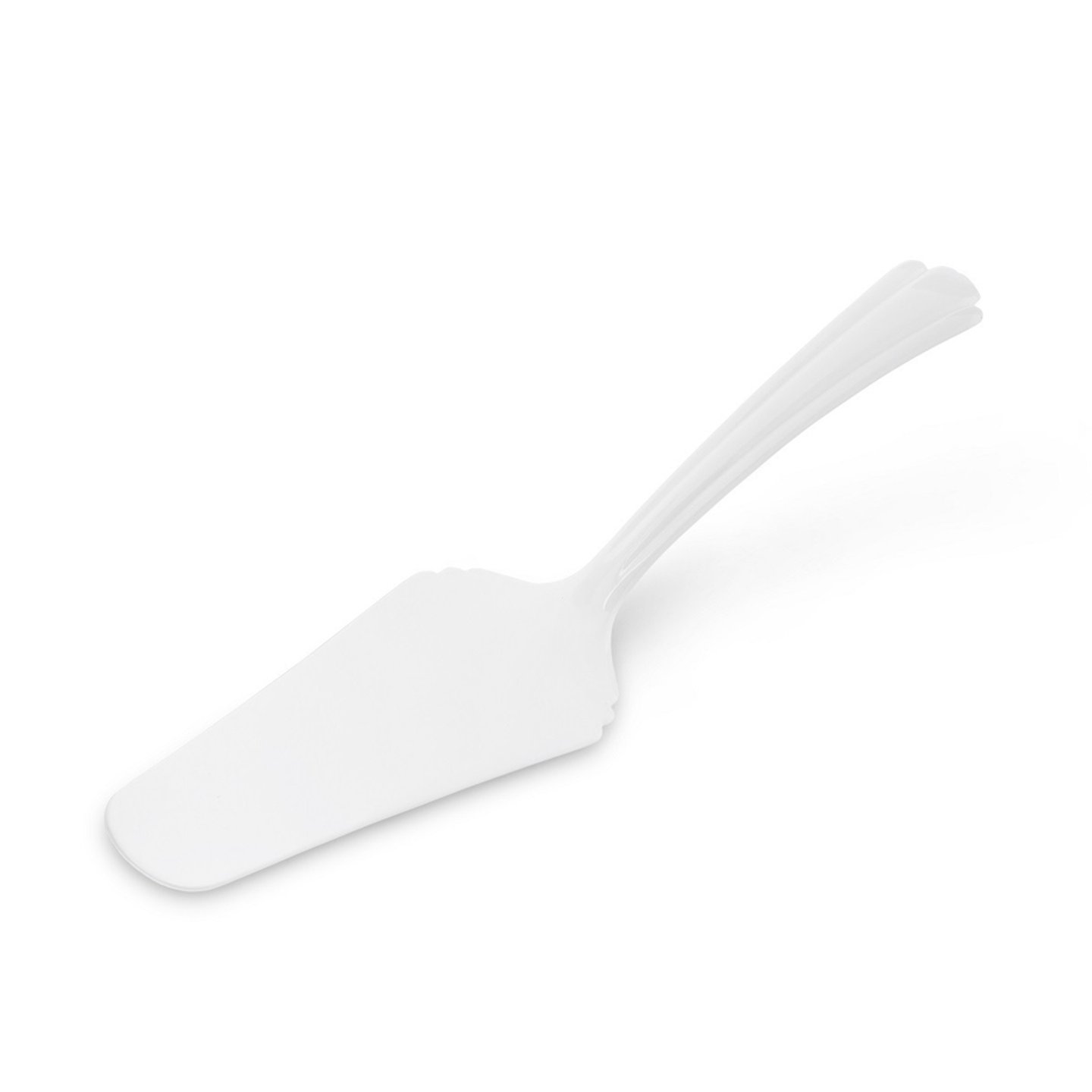 Bílá, pevná plastová lopatka na nabírání dortů.