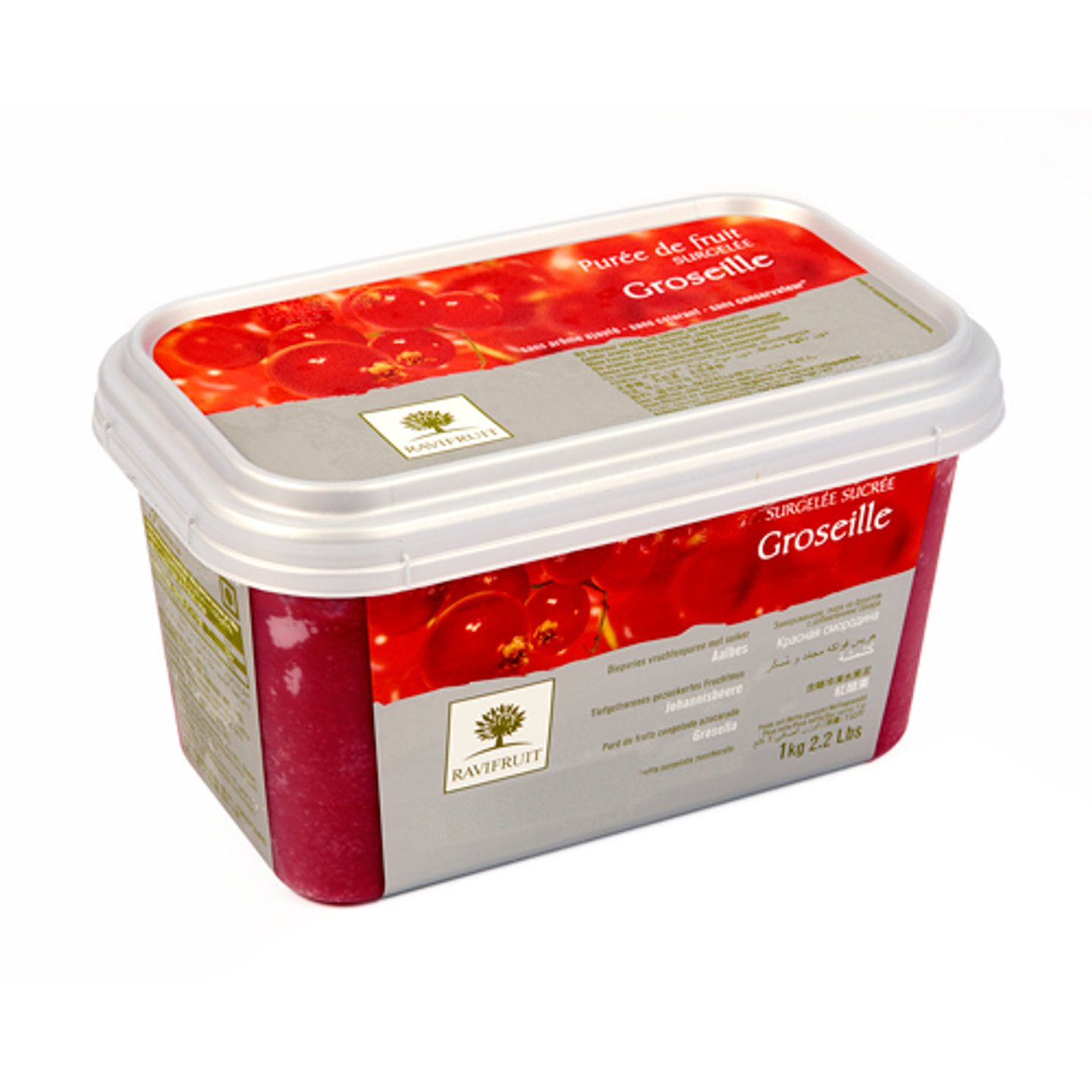 Mražené pyré Červený rybíz obsahuje 90% dřeně z červeného rybízu a 10% cukru.