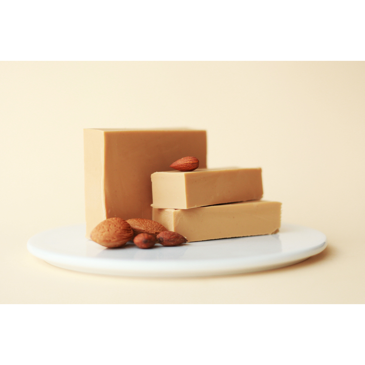 Světlý nugát vyrobený z čerstvých pražených lískových oříšků.