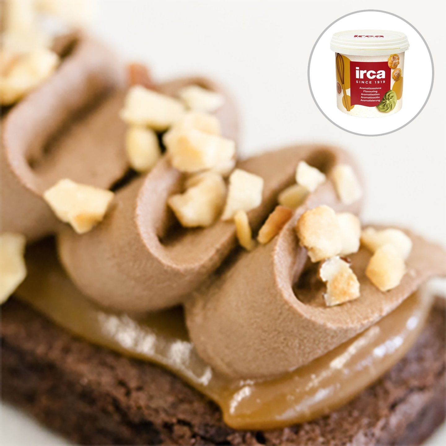 Ochucovací pasta z pražených lískových ořechů pro výrobu mléčné zmrzliny.