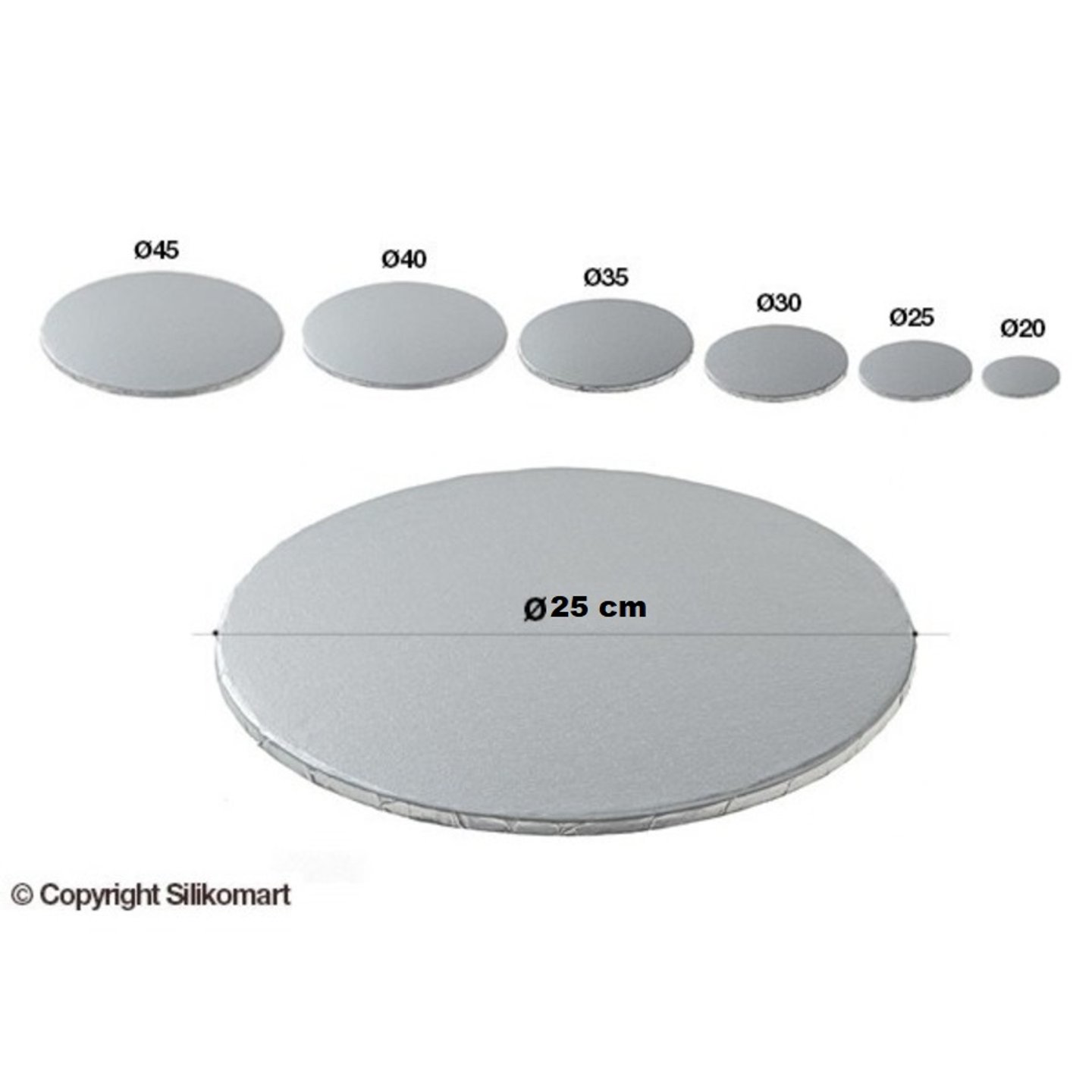 Podložka silná dortová pr.25cm v.1,2cm stříbrná Silikomart