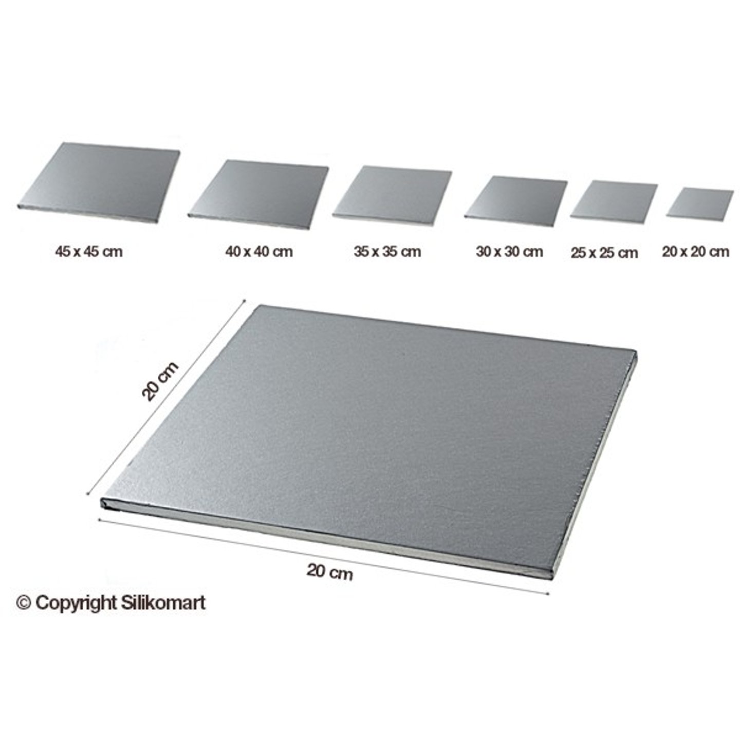 Podložka silná dortová 20x20cm v.1,2cm stříbrná Silikomart