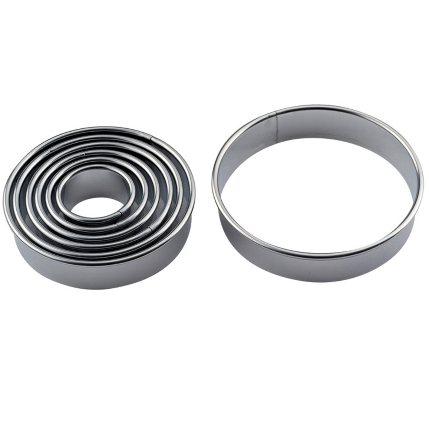 Sada vysoce kvalitních nerezových vykrajovátek různých velikostí v praktické dóze.